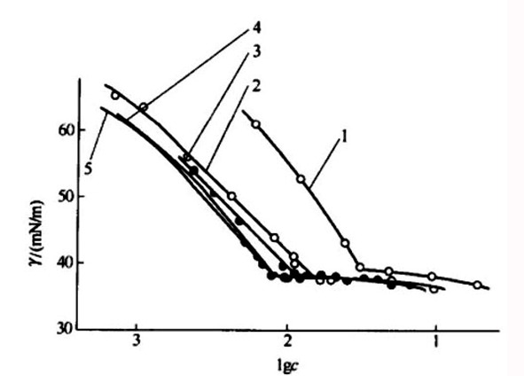 而當表面活性劑濃度大于CMC值時,表面活性劑不會在氣液界面上增加排布,而會在液體內部形成膠束或游離等狀態,因此拉環法方法不能測出濃度增大時表面張力的區別。